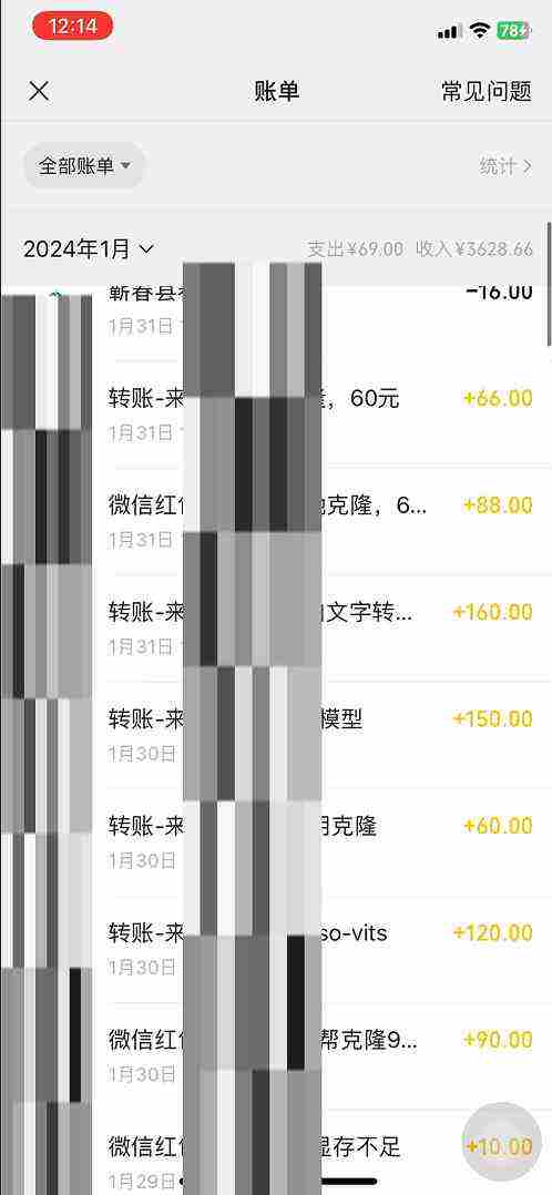 软件是1月份新出来的,我从1月19号到1月31号 共13天时间微信收3628,另外支付宝上面收了600多。平均每天300+左右