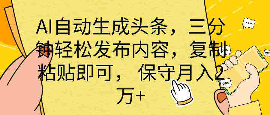 AI撸头条3天必起号,无脑操作超简单3分钟1条,复制粘贴快速月入2W+。