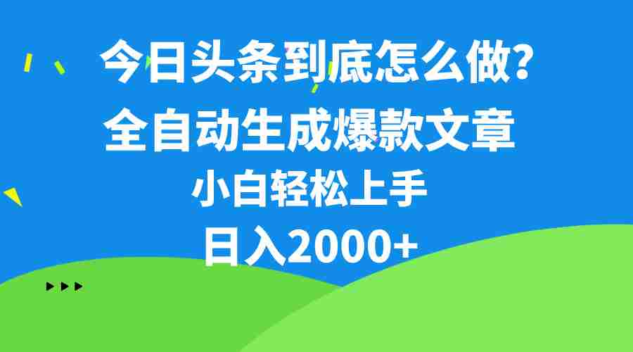 相信大家对最近爆火的今日头条项目都有所了解,目前今日头条文章创收的一个收益是相当的可观,今年初我就入局了今日头条 。现如今整体经济不太好,这也导致越来越多的人对现在的工资不太满意,从而去互联网上寻找出路,幸好今日头条文章创作给了很普通人的一个机遇,今天我将把我在今日头条日入2000+的方法分享给大家、具体的操作是如何呢,就是通过几个简单的指令,让AI软件帮我们一键生成当下的爆款文章,从而赚取一个创作的收益,接下来我给大家带来一个保姆式的教学,大家只要跟着操作就可以了