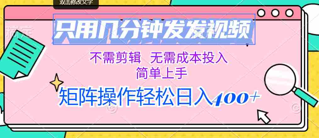 只用几分钟发发视频,不需剪辑,无需成本投入,简单上手,矩阵操作轻松日入400+