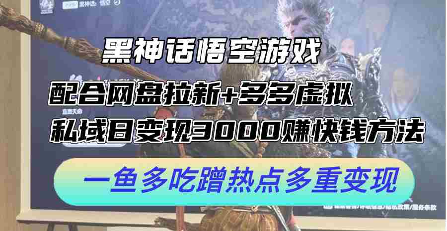 通过这个热点配合网盘拉新+多多虚拟+私域日变现,一鱼多吃日变现,操作非常简单。